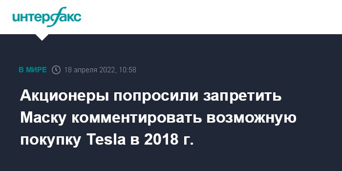 Акционеры попросили запретить Маску комментировать возможную покупку Tesla в 2018 г.