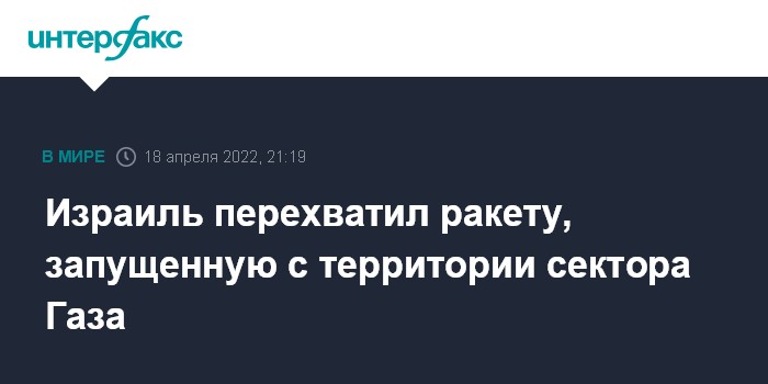 Москва. 18 апреля. INTERFAX.RU - Израильская система ПРО "Железный купол" в понедельник перехватила ракету, запущенную с территории сектора Газа, сообщает The Times of Israel со ссылкой на израильских военных.