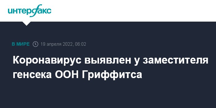 Коронавирус выявлен у заместителя генсека ООН Гриффитса
