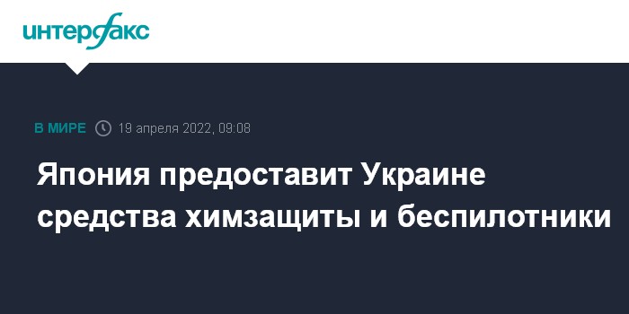 Москва. 19 апреля. INTERFAX.RU - Япония предоставит Украине маски и одежду, способные защитить от химического оружия, а также беспилотные летательные аппараты, сообщил во вторник министр обороны Японии Нобуо Киси.