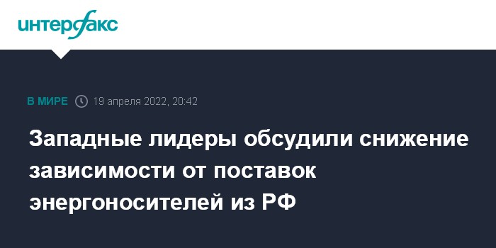 Москва. 19 апреля. INTERFAX.RU - Лидеры западных стран в ходе видеоконференции отметили важность диверсификации поставок энергоносителей, чтобы снизить зависимость от России, сообщает во вторник правительство Италии.