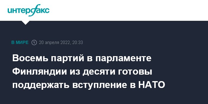 Восемь партий в парламенте Финляндии из десяти готовы поддержать вступление в НАТО