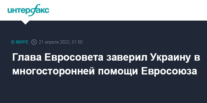Помимо этого, председатель Европейского совета подчеркнул важность военной, политической и гуманитарной помощи Украине, заверив Киев в конкретном участии ЕС в этих вопросах.