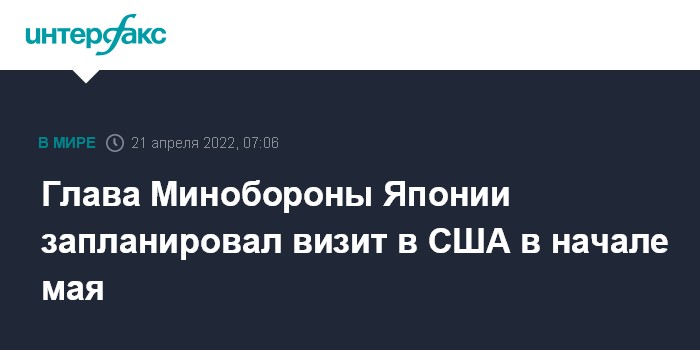 Москва. 21 апреля. INTERFAX.RU - Министр обороны Японии Нобуо Киси планирует посетить США в начале мая для переговоров со своим американским коллегой Ллойдом Остином, сообщают японские СМИ со ссылкой на осведомленные источники.