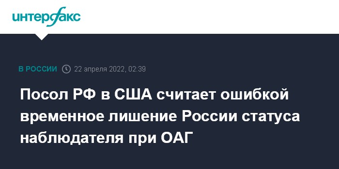 Посол РФ в США считает ошибкой временное лишение России статуса наблюдателя при ОАГ