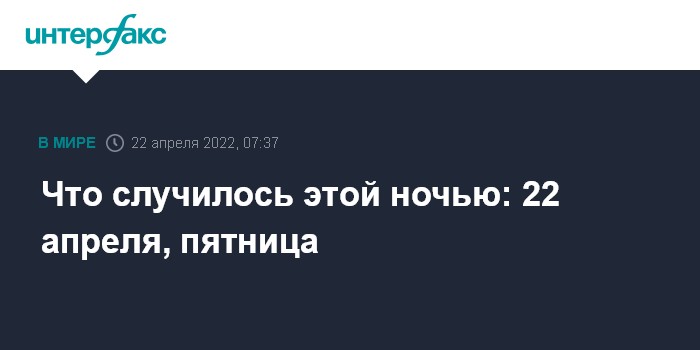 Москва. 22 апреля. INTERFAX.RU - Краткая сводка событий, произошедших за ночь: