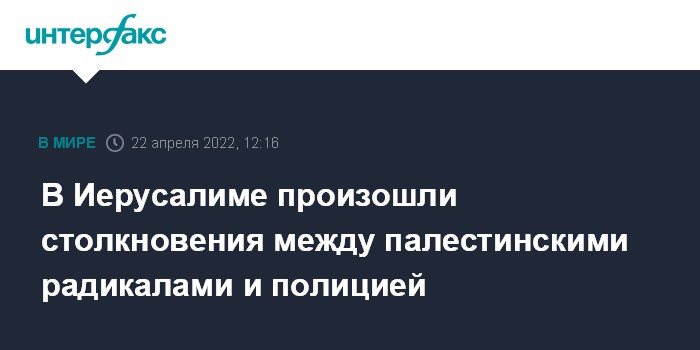 Москва. 22 апреля. INTERFAX.RU - Столкновения сотен радикально настроенных палестинцев с израильской полицией произошли после утренней пятничной молитвы на Храмовой горе в Иерусалиме, сообщает в пятницу The Jerusalem Post.