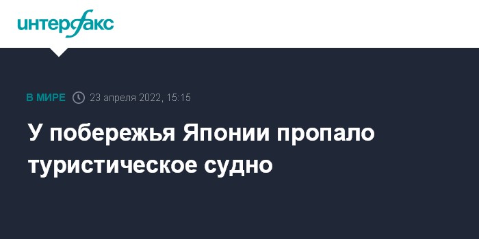 Москва. 23 апреля. INTERFAX.RU - Туристическое судно, на борту которого находятся 26 человек, на протяжении нескольких часов не выходит на связь у северного побережья Японии, сообщает в субботу NHK.