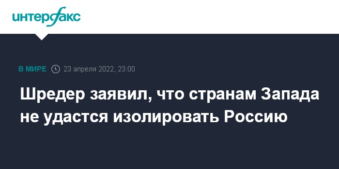 Шредер заявил, что странам Запада не удастся изолировать Россию