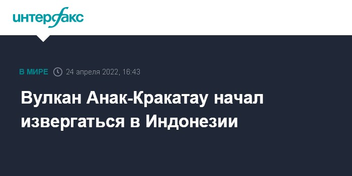 Москва. 24 апреля. INTERFAX.RU - В Индонезии началось извержение вулкана Анак-Кракатау, расположенного в Зондском проливе между островами Ява и Суматра, сообщил в воскресенье телеканал Channel NewsAsia.
