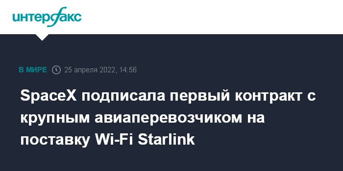 SpaceX подписала первый контракт с крупным авиаперевозчиком на поставку Wi-Fi Starlink