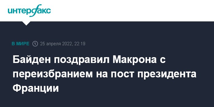 "Президент Джо Байден поговорил сегодня с президентом Франции Эммануэлем Макроном, чтобы поздравить его с переизбранием. Он подчеркнул тесные и прочные отношения между США и Францией, нашим старейшим союзником, основанные на общих демократических ценностях, экономических связях и сотрудничестве в сфере безопасности", - говорится в пресс-релизе Белого дома.