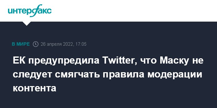 Бретон заявил во вторник, что хотел бы "проверить в реальных условиях" как Маск будет осуществлять планы смягчения модерации. Он отметил, что несоблюдение соцсетью введенных в ЕС правил может грозить платформе блокировкой в Европе.