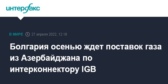 Москва. 27 апреля. INTERFAX.RU - Болгария рассчитывает в сентябре 2022 года получать азербайджанский газ по интерконнектору Греция-Болгария (Interconnector Greece-Bulgaria, IGB), заявил в ходе визита в Грецию болгарский премьер-министр Kиpилл Петков.