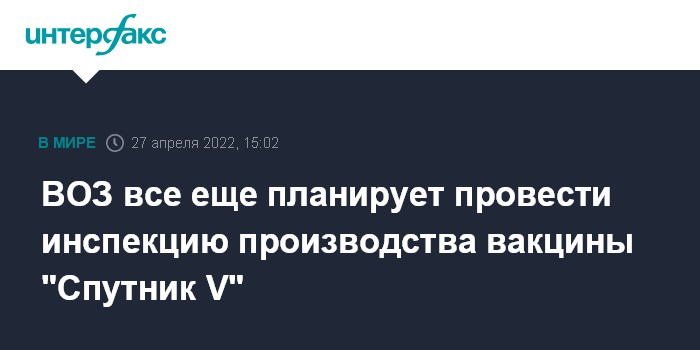 Ранее в ВОЗ сообщили "Интерфаксу", что приезд инспекции организации в Россию в рамках процедуры одобрения "Спутника V" был запланирован на март, однако это зависит от разрешения службы безопасности ООН и ситуации в регионе.