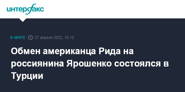 Обмен американца Рида на россиянина Ярошенко состоялся в Турции