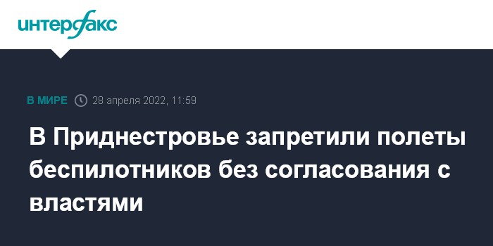 Москва. 28 апреля. INTERFAX.RU - Беспилотникам запрещено летать над территорией Приднестровья без согласования с министерством госбезопасности региона, соответствующий указ подписал президент непризнанной республики Вадим Красносельский.