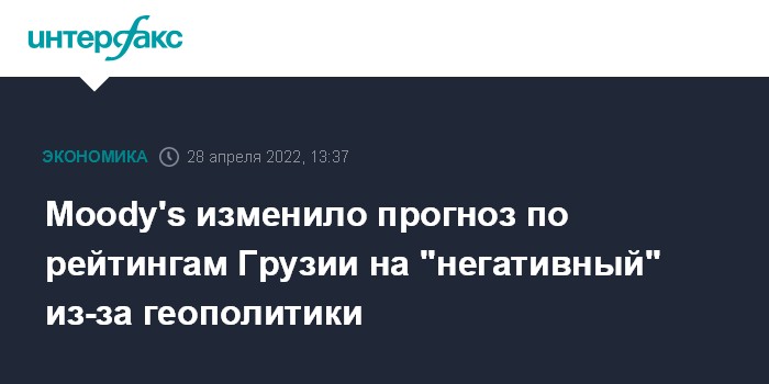Москва. 28 апреля. INTERFAX.RU - Агентство Moody's изменило прогноз по рейтингам Грузии на "негативный" со "стабильного" и подтвердило долгосрочные рейтинги эмитента в национальной и иностранной валюте на уровне "Ba2".