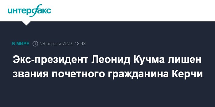 Москва. 28 апреля. INTERFAX.RU - Депутаты Керченского горсовета в четверг проголосовали за то, чтобы лишить бывшего президента Украины Леонида Кучмы и экс-премьера Крыма Сергея Куницына званий почетных граждан Керчи.