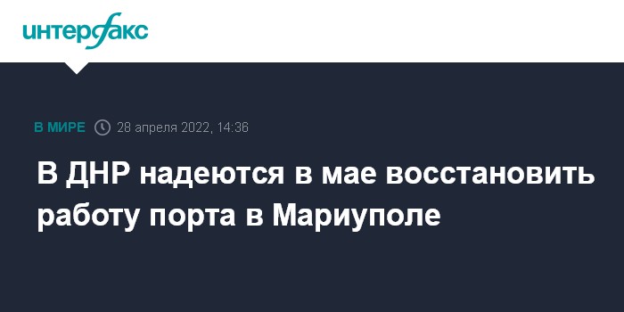 Москва. 28 апреля. INTERFAX.RU - Порт украинского города Мариуполь, взятого под контроль российской армией, в ближайшее время начнёт работу, первая отгрузка планируется уже в мае, сообщил глава Донецкой народной республики Денис Пушилин.