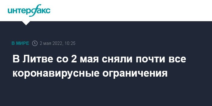 Москва. 2 мая. INTERFAX.RU - Власти Литвы сняли с понедельника почти все коронавирусные ограничения.