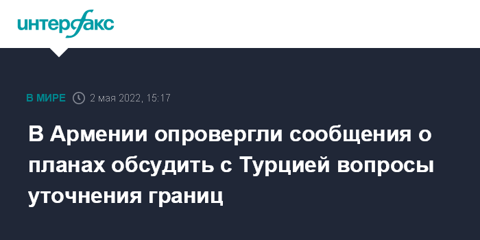 Ранее ряд СМИ сообщили со ссылкой на главу МИД Турции Мевлюта Чавушоглу о договоренности между Ереваном и Анкарой об уточнении госграницы. Как сообщалось, очередная встреча спецпредставителей Армении и Турции в рамках процесса нормализации отношений между странами пройдет в Вене 3 мая.