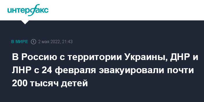 В Россию с территории Украины, ДНР и ЛНР с 24 февраля эвакуировали почти 200 тысяч детей