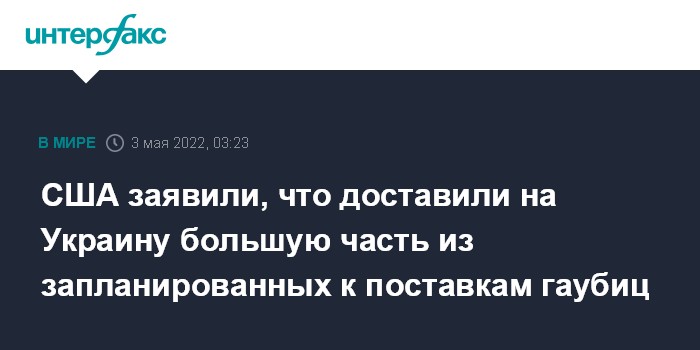 В конце апреля журнал Foreign Policy со ссылкой на неназванного высокопоставленного представителя Пентагона писал, что США направили Украине 100 из 700 запланированных для поставки беспилотников Switchblade и осуществили доставку более 60% от 90 гаубиц.