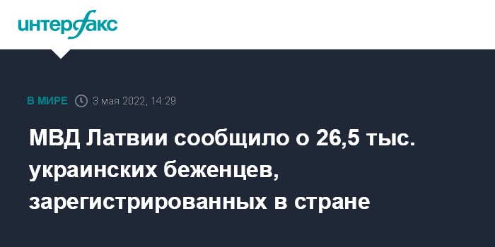 Москва. 3 мая. INTERFAX.RU - С начала спецоперации РФ на Украине в Латвии зарегистрирован 26 541 украинский беженец. Такие данные привело Министерство внутренних дел страны.