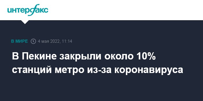 Москва. 4 мая. INTERFAX.RU - В Пекине в среду 4 мая не работают около сорока станций метро в центре города, это около 10% от общего количества станций, сообщает АР. Это решение принято, чтобы сдержать распространение коронавируса.