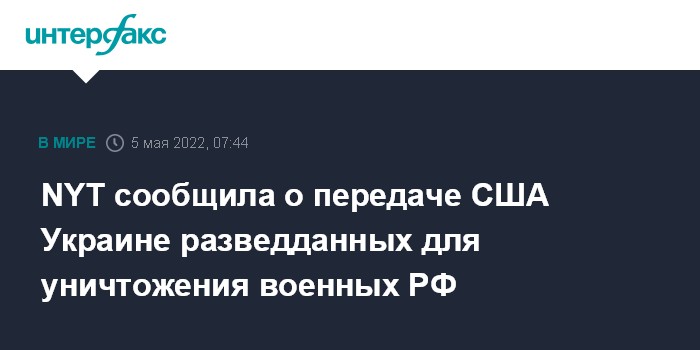 NYT сообщила о передаче США Украине разведданных для уничтожения военных РФ