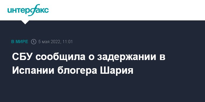 Москва. 5 мая. INTERFAX.RU - Оппозиционный украинский блогер Анатолий Шарий задержан властями Испании, сообщила в четверг Служба безопасности Украины.