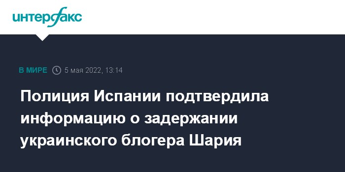 Москва. 5 мая. INTERFAX.RU - Испанская полиция в четверг подтвердила факт задержания украинского блогера Анатолия Шария, сообщает испанское издание Diario.