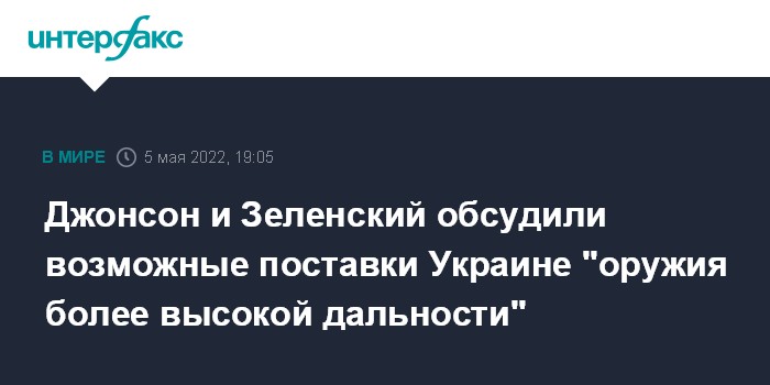 Джонсон и Зеленский обсудили возможные поставки Украине "оружия более высокой дальности"