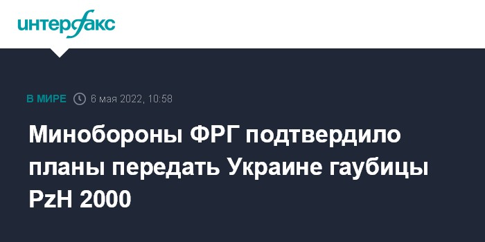 Москва. 6 мая. INTERFAX.RU - Глава Минобороны ФРГ Кристине Ламбрехт в пятницу заявила, что Германия хочет направить Украине семь самоходных артиллерийских установок PzH 2000 (Panzerhaubitze 2000), сообщает издание Stern.
