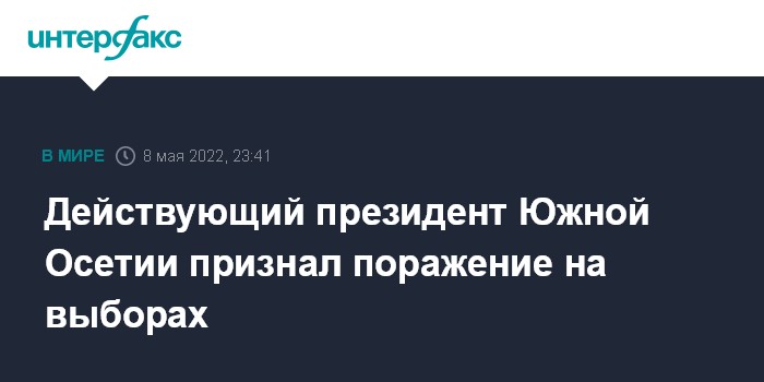 Москва. 8 мая. INTERFAX.RU - Действующий президент Южной Осетии Анатолий Бибилов признал поражение на выборах и заявил, что желает лидеру партии "Ныхас" Алану Гаглоеву успешной работы.