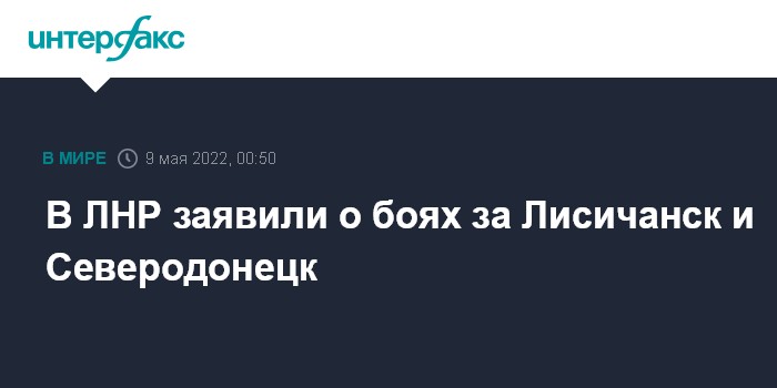 Москва. 9 мая. INTERFAX.RU - Союзные силы Луганской народной республики и России ведут бои в направлении городов Лисичанск и Северодонецк, сообщил посол ЛНР в РФ Родион Мирошник.