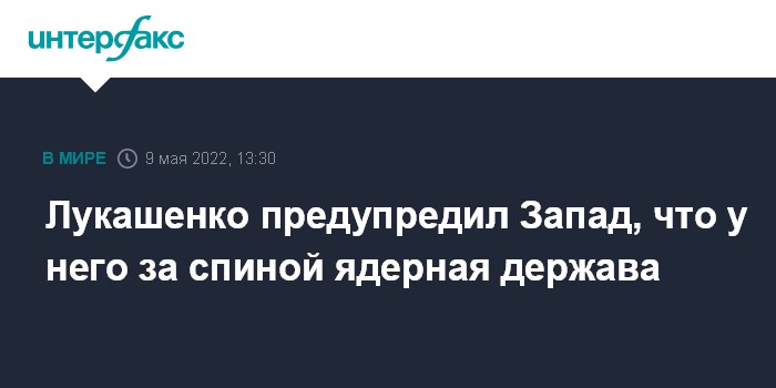 Москва. 9 мая. INTERFAX.RU - Президент Белоруссии Александр Лукашенко заявил, что понимает силу НАТО, но у него за спиной ядерная держава - Россия.