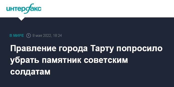 Москва. 9 мая. INTERFAX.RU - Мэр второго по величине эстонского города Тарту Урмас Клаас (Urmas Klaas) и председатель горсобрания Тынис Лукас (Tonis Lukas) обратились в министерство обороны и министерство культуры с просьбой перенести советский военный мемориал из парка Раади (Raadi).