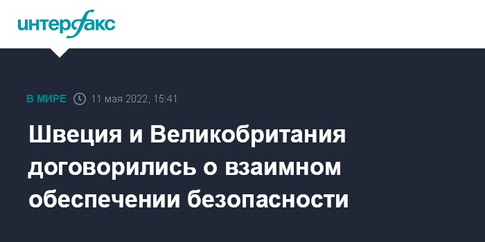 Москва. 11 мая. INTERFAX.RU - Премьер-министры Великобритании и Швеции Борис Джонсон и Магдалена Андерссон подписали в Швеции заверения о предоставлении взаимных гарантий безопасности, сообщили на Даунинг-стрит, 10.
