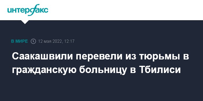 Москва. 12 мая. INTERFAX.RU - Сотрудники пенитенциарной службы перевели бывшего президента Грузии Михаила Саакашвили из тюрьмы в Рустави в гражданскую клинику "Вивамед" в Тбилиси для обследования и возможного лечения, сообщили грузинские СМИ. Он был переведен 12 мая утром.