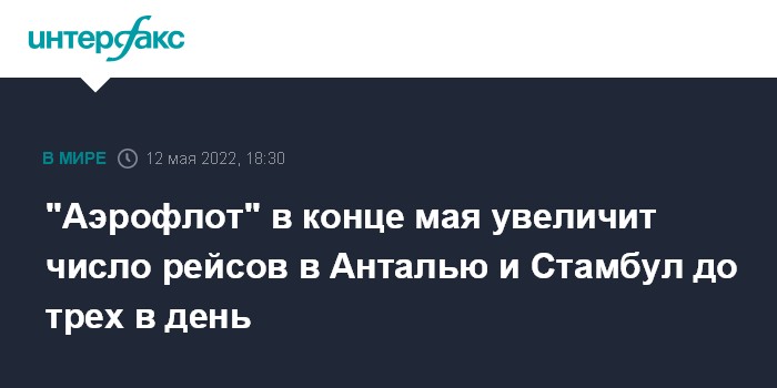 Москва. 12 мая. INTERFAX.RU - "Аэрофлот" c 27 мая увеличит частоту рейсов в Анталью и Стамбул до трех в день, говорится в сообщении компании.
