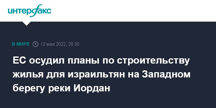 Москва. 12 мая. INTERFAX.RU - Высокий представитель ЕС по иностранным делам Жозеп Боррель распространил заявление, в котором осуждается решение израильских властей о строительстве более 4,4 тыс. единиц жилья на Западном берегу реки Иордан.