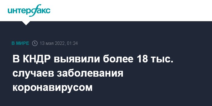 "Северная Корея сообщает, что в четверг у более чем 18 тыс. пациентов был подтверждён COVID-19", - сообщает агентство.
