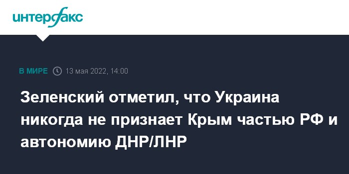 "Мы никогда не признаем Крым частью РФ. Мы готовы говорить с РФ, что не ко времени решение по Крыму... Идет война, ко времени – человеческие жизни. Давайте отставим этот вопрос, если он болезненный, усложняет процесс переговоров, процесс встречи президентов Украины и России", - сказал Зеленский.