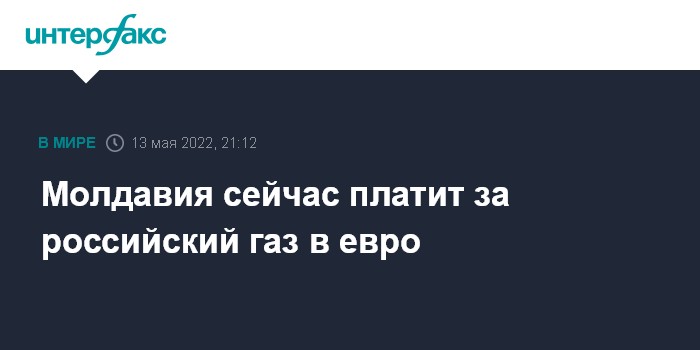 Москва. 13 мая. INTERFAX.RU - Сейчас Молдавия платит за российский газ "Газпрому" в евро, сообщил телеканалу "РТР-Молдова" председатель правления АО "Молдовагаз" Вадим Чебан.