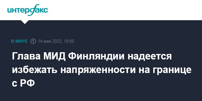 Москва. 14 мая. INTERFAX.RU - Финляндия не видит в данный момент проблем в районе границы с Россией и надеется, что так будет и дальше, несмотря на стремление Хельсинки вступить в НАТО, заявил в субботу глава финского МИД Пекка Хаависто.