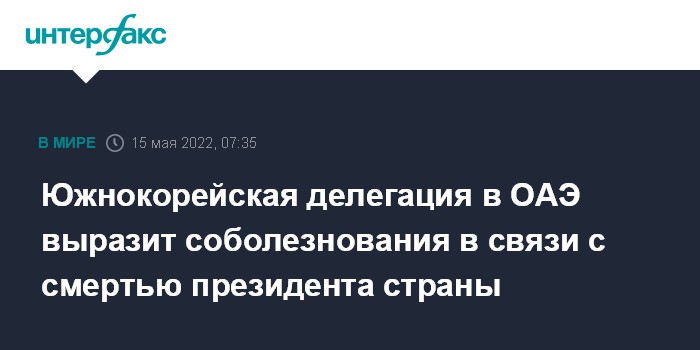 Южнокорейская делегация в ОАЭ выразит соболезнования в связи с смертью президента страны