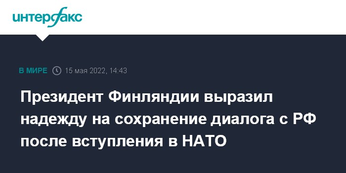 Москва. 15 мая. INTERFAX.RU - Президент Финляндии Саули Ниинистё (Sauli Niinisto) не исключает, что отношения с Россией изменятся, но надеется на сохранение диалога и после вступления страны в НАТО.