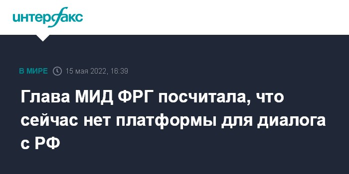 Москва. 15 мая. INTERFAX.RU - Глава МИД Германии Анналена Бербок заявила, что диалог между странами важен всегда, но сейчас платформ для общения с Россией нет.